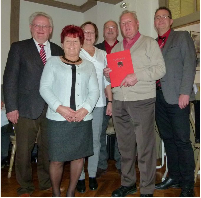 Johann Roßkpf, Heidi Vogel, Gabriele Fograscher, Richard Graf, Adolf Hurler (Jubilar), Bernd Schneid