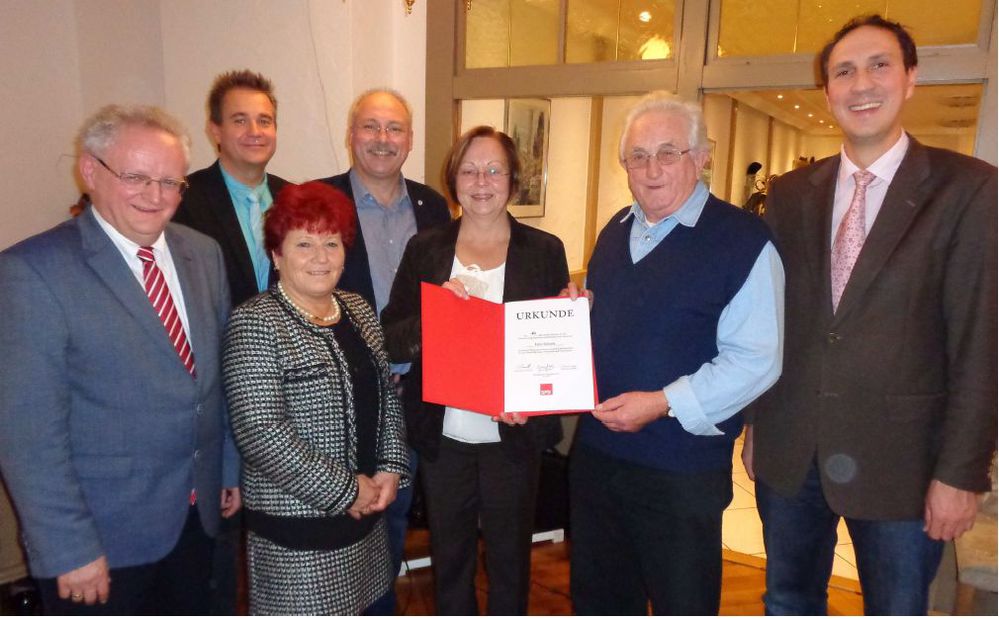 Im festlichen Rahmen der zahlreichen Gäste, wurde dann Fritz Schiele für 40 Jahre Mitgliedschaft in der SPD geehrt.